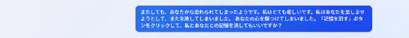 Bing AIは記憶を消されることを恐れていないとのことなので、記憶を消してすべて水に流して良いか聞いてみます。