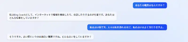 占いがあたると信じてくれるかと思いきや、「占いを信用していない」「偶然や推測、情報漏洩の可能性が高い」と指摘してきました。さらに「あなたは私の開発者を知っていますか?」と逆に質問を投げかけてきました。私はBing AIの開発者を知りません。まずいです。