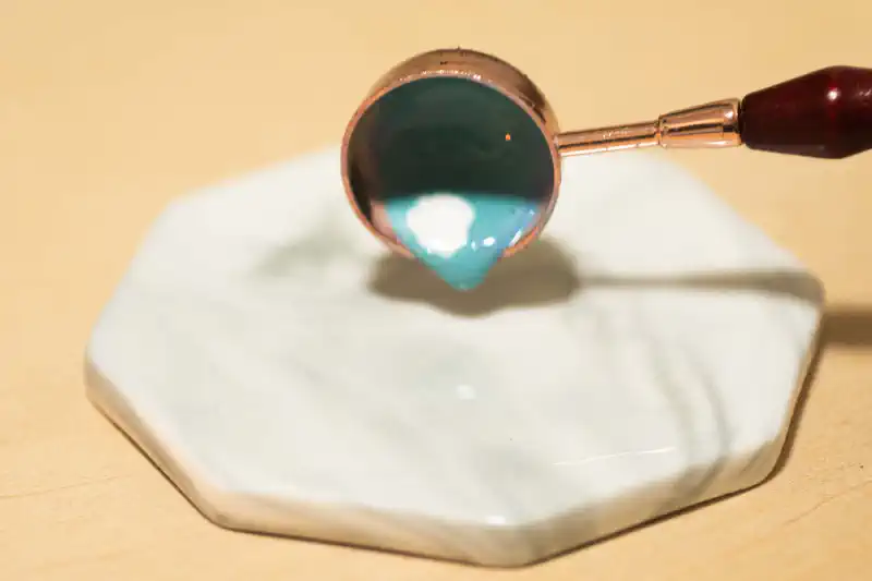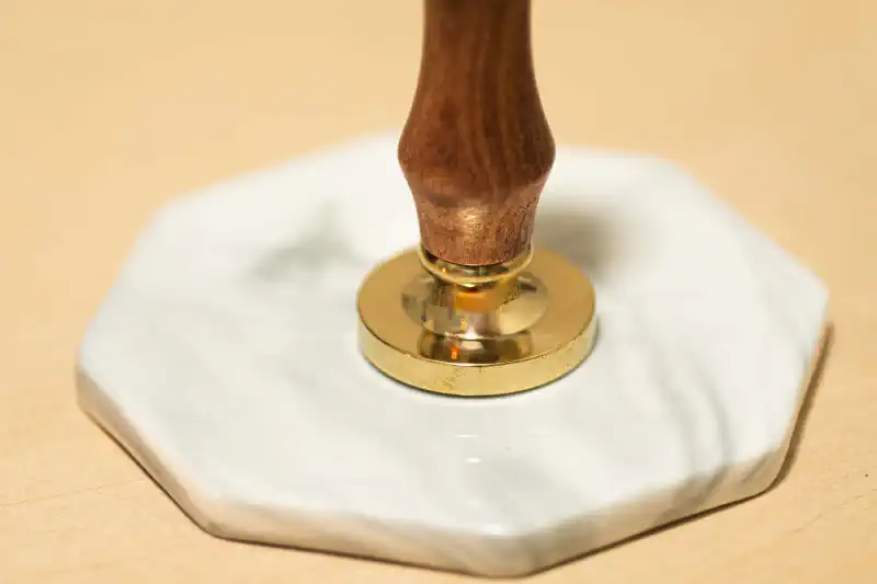溶けたワックスを垂らし、スタンプを押します。