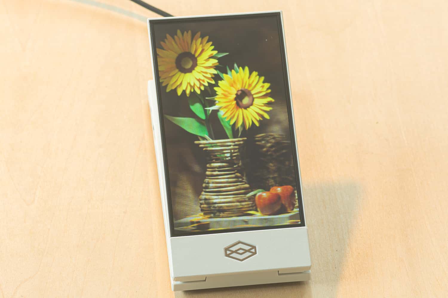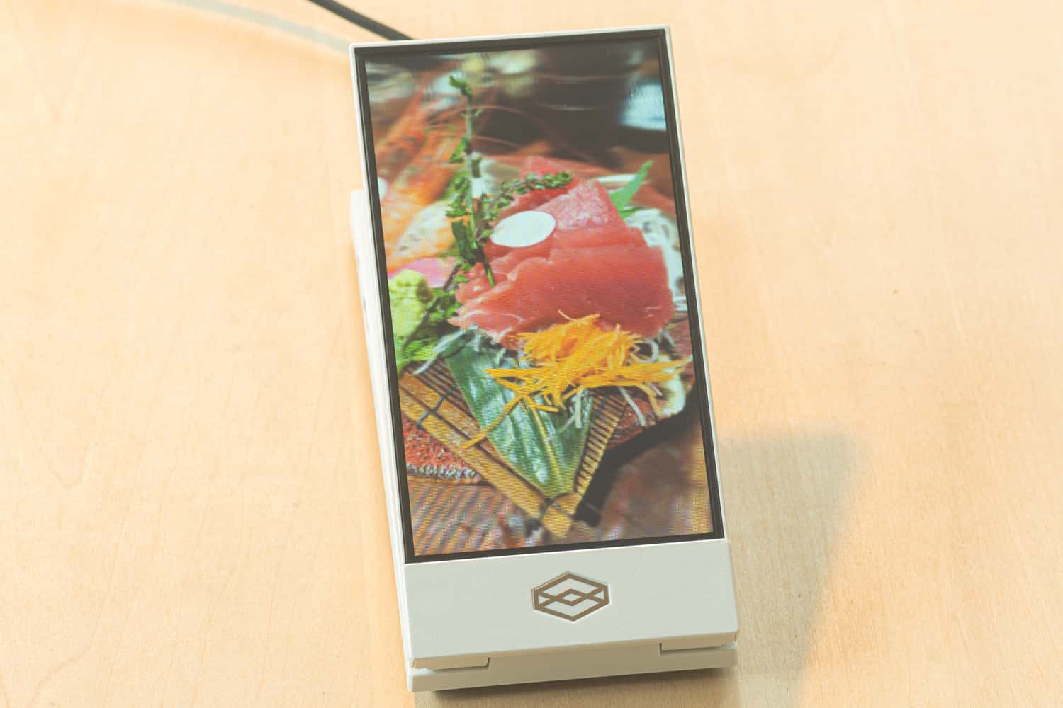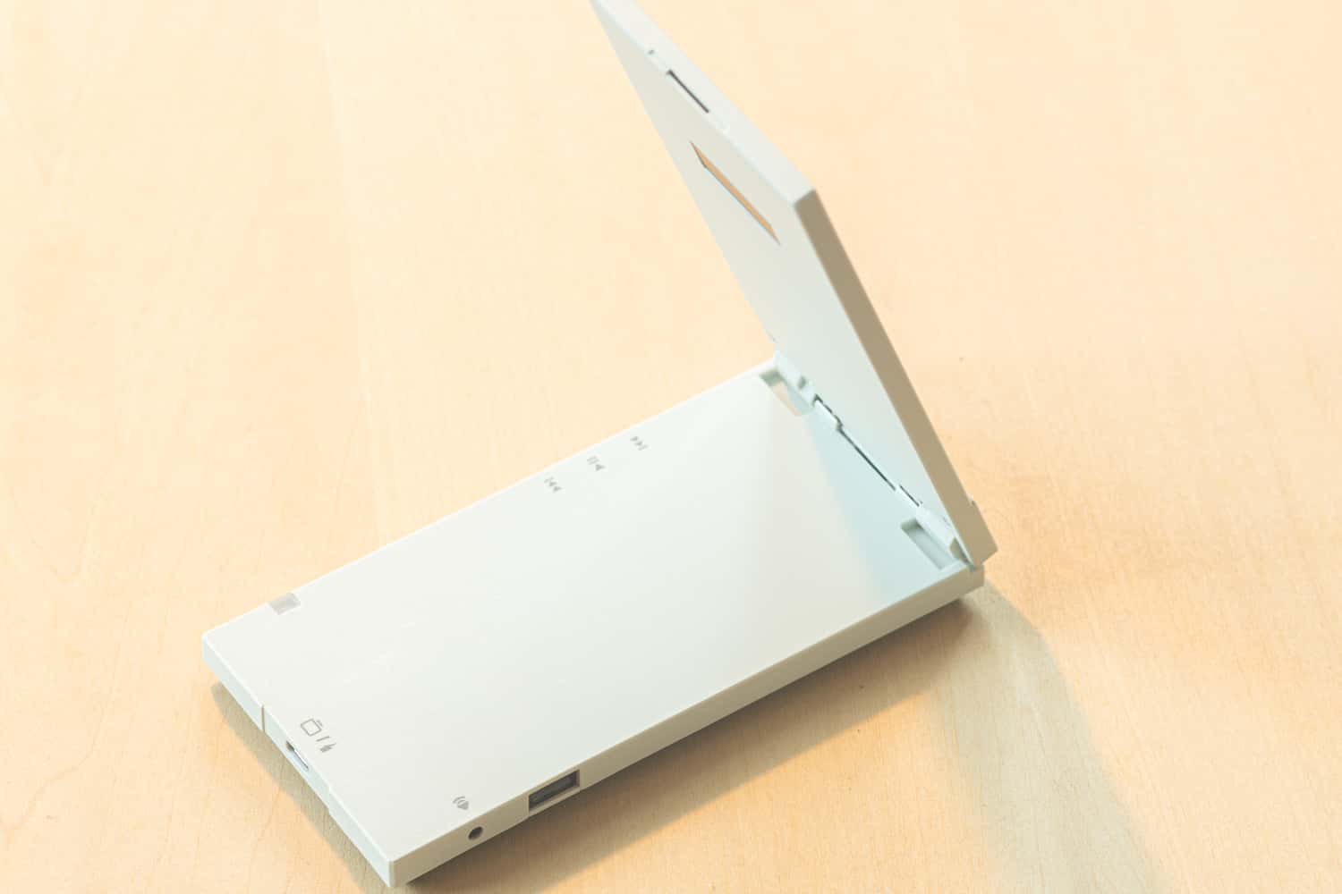ボディは、スマホくらいの大きさでフォトスタンド型になっています。ディスプレイの厚みは従来のものと比べて大幅に薄くなり、ボディも軽くなっています。