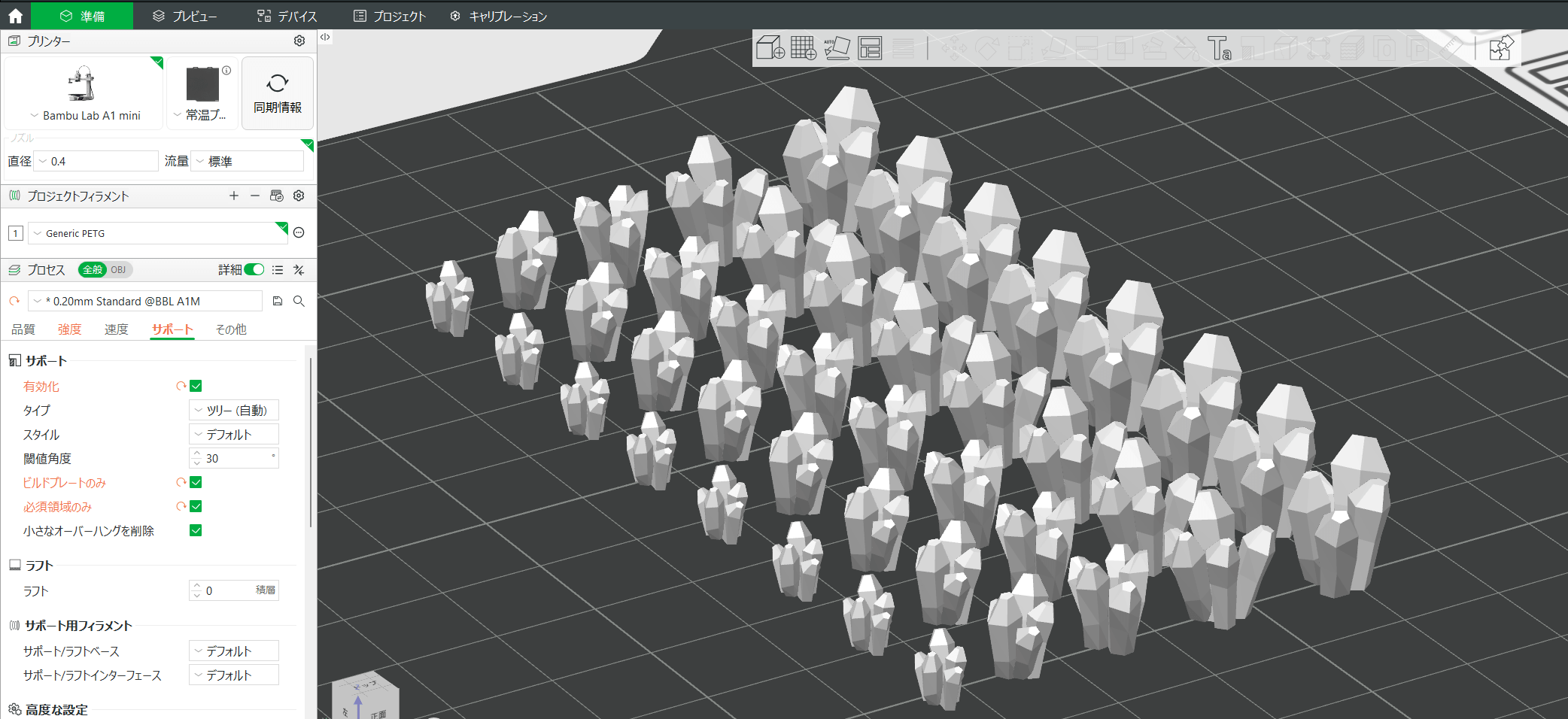 洞窟の壁とは一体化せず、別パーツとして出力しました。一つ一つ手作業で接着する方が、配置の自由度が高く、試行錯誤しやすいからです。