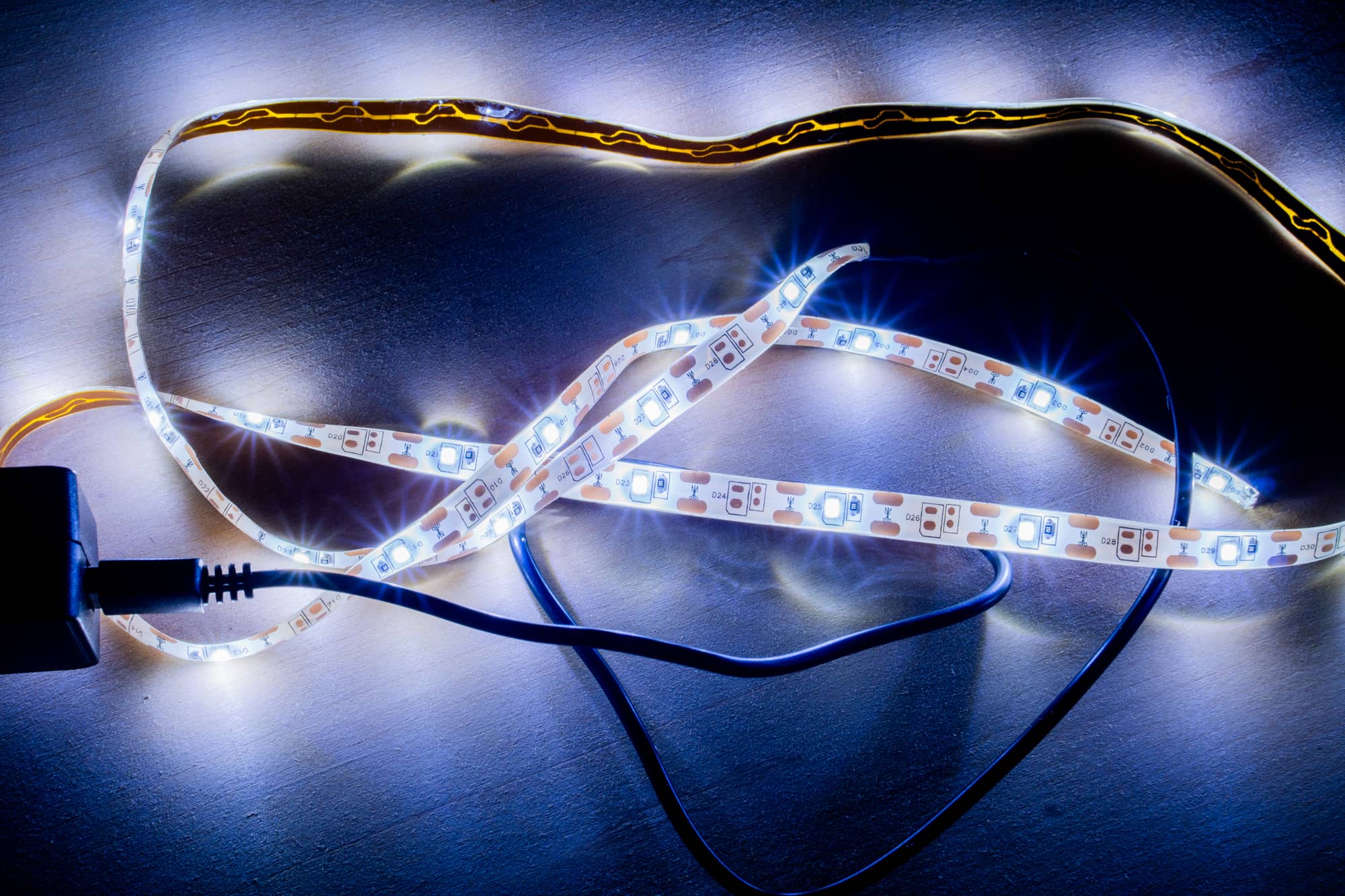 これに、ダイソーで買ってきたテープライトを仮止めしてみます。後で調整しやすいように、セロハンテープで軽く固定しているだけです。