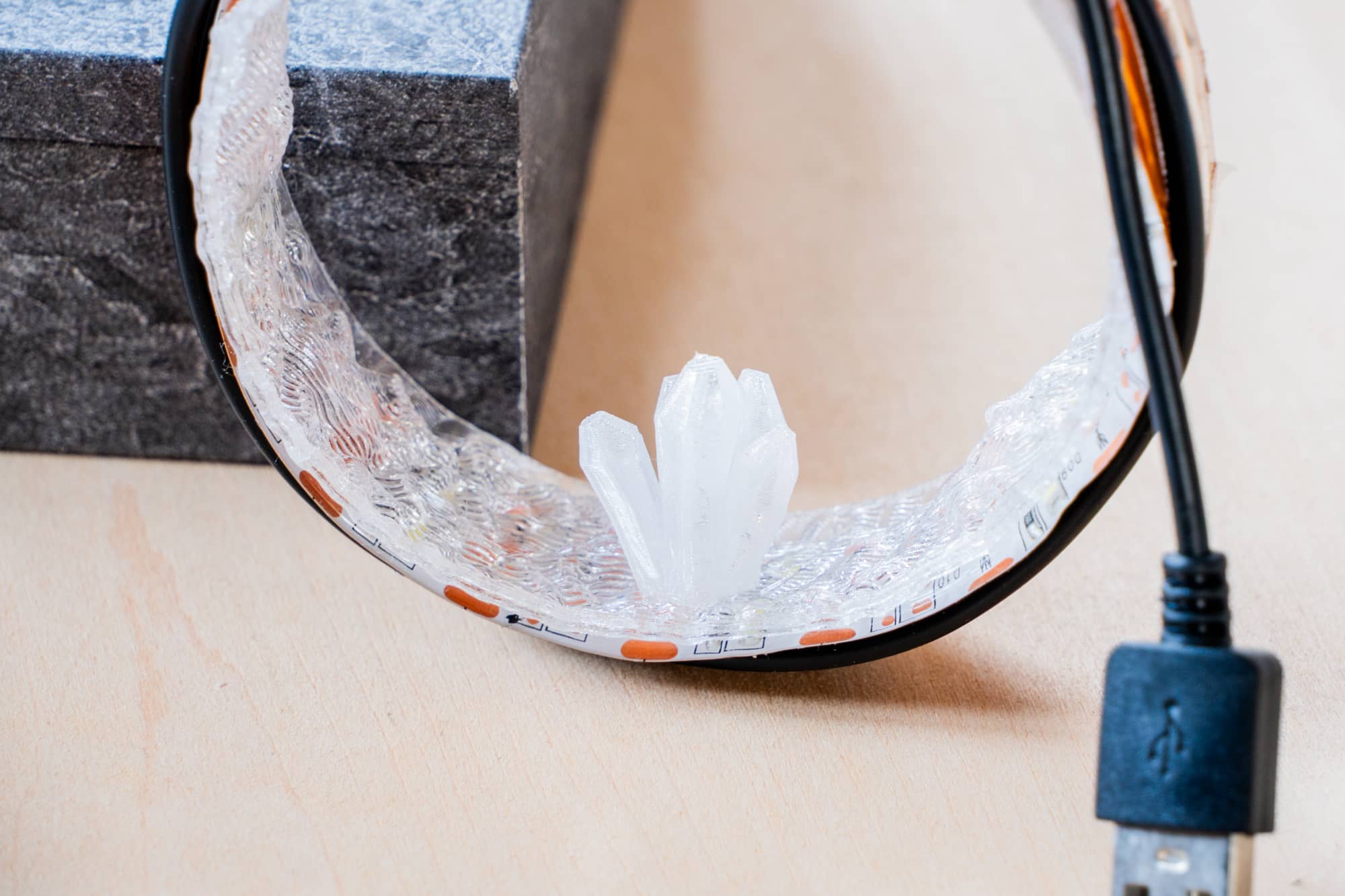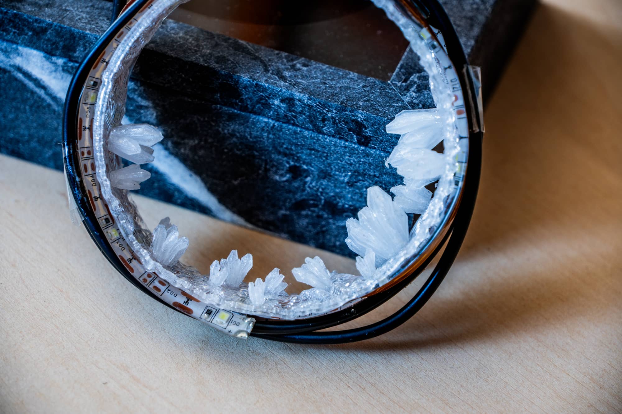 これにLEDを組み合わせてキラキラ光らせる。このアイデアなら、完全な透明度を追求しなくても、むしろ少し曇っている方が光を柔らかく拡散させて、幻想的な雰囲気を出せるかもしれません。